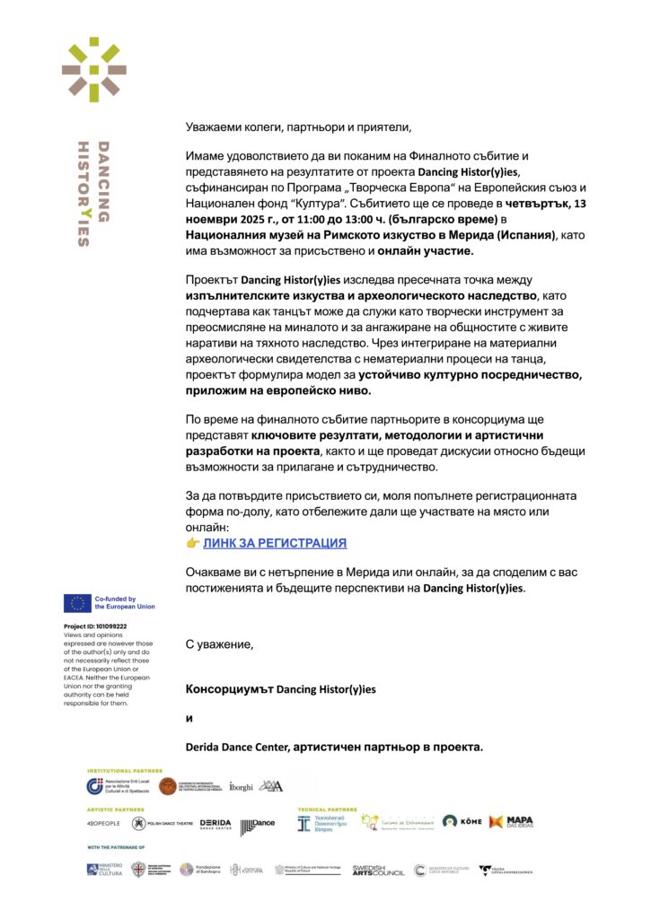 © 2023 Фондация Арт Линк (Сцена Дерида, Дерида Денс Център). Този сайт е създаден в рамките на проект „Устойчиво развитие на Сцена Дерида“, финансиран от Национален фонд „Култура“ по програма „Възстановяване и развитие на частни културни организации ’22“.