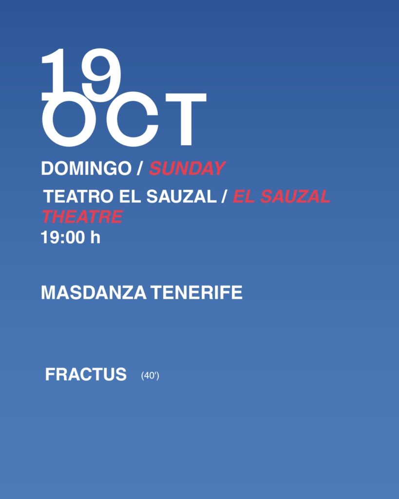 On October 19, the performance “FRACTUS” by Derida Dance Company will be presented as part of the 30th edition of the MASDANZA International Contemporary Dance Festival of the Canary Islands. The festival is an established international platform for contemporary dance, bringing together artists and companies from around the world every year.